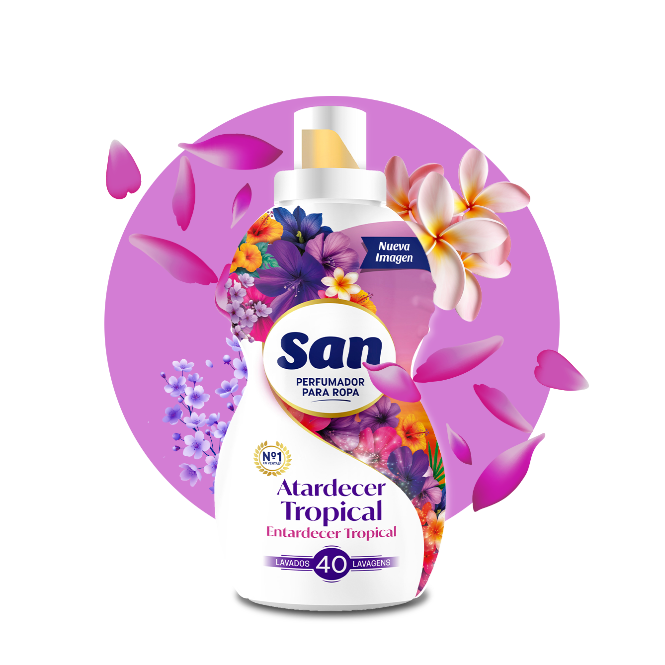 Una fragancia moderna e intensa, que combina frutas y flores tropicales. Un perfume altamente sensorial que consigue una aroma sofisticado y longlasting en tu ropa. Escápate con el nuevo San Atardecer Tropical a ese momento único que precede a la noche, y déjate envolver por un ambiente cálido y exótico. Una explosión de sensaciones y aroma en cada colada, que perdura en el tiempo.